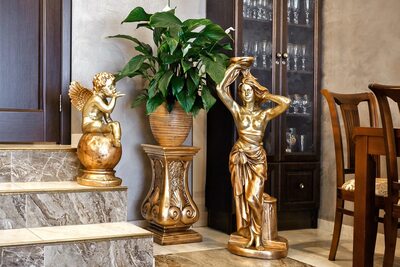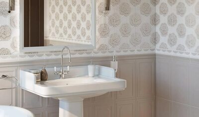 Изысканная раковина в ванную в стиле неоклассика, добавляющая шарма и элегантности интерьеру. Посмотрите наше портфолио!