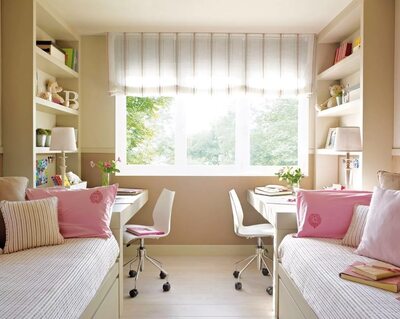 Погрузитесь в уютную атмосферу детской комнаты, созданной специально для двух милых девочек. Фотография интерьера в стиле "Детская на двух девочек".
